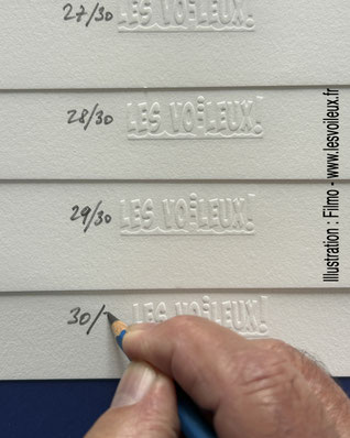 Les tirages sont limités à 30 exemplaires numérotés de 1 à 30, embossés à sec, numérotés et signés par l'artiste.